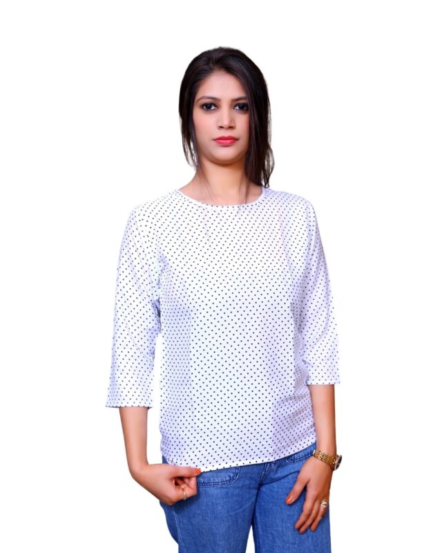 Dr. SaaB Casual Tops for Women, Dot Print for Girls, Regular Fit, Color: White